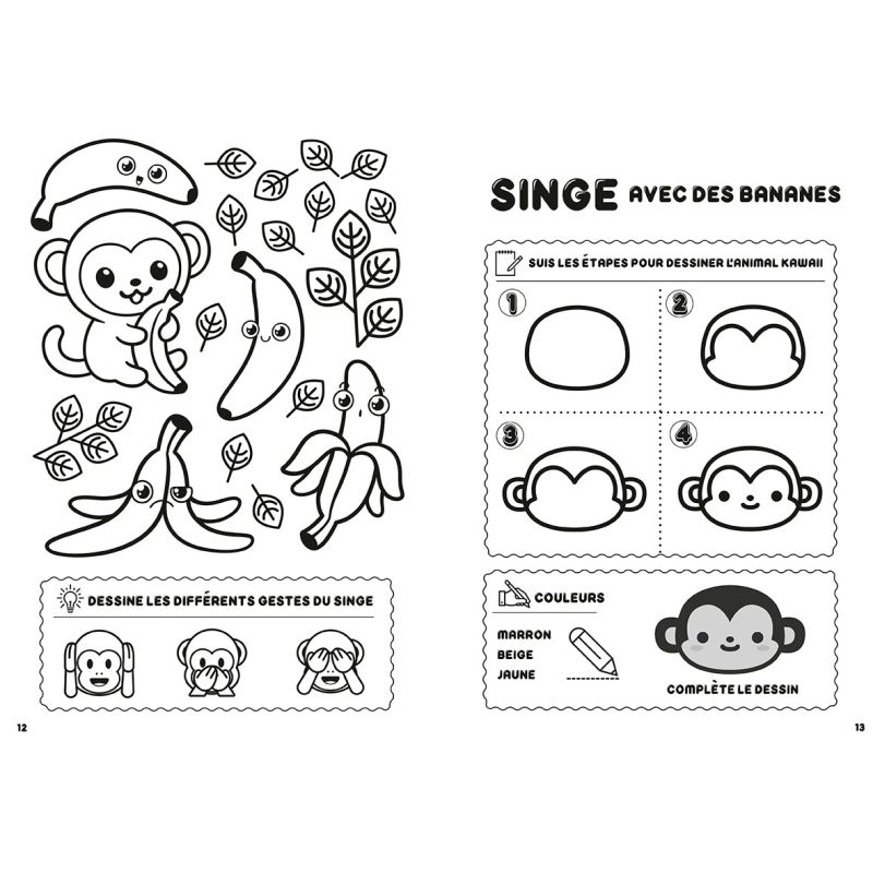 Le kawaii est un style de dessin japonais très à la mode, signifiant littéralement mignon . Ce cahier d'activités propose 48 pas à pas pour apprendre à dessiner de nombreux animaux kawaii. Chaque pas à pas est découpé en 4 étapes simples.