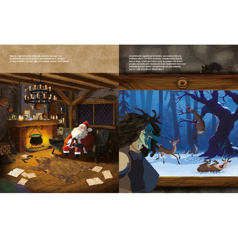 Carapistouille est une effrayante sorcière qui déteste Noël, les enfants, et les gens en général. Mais voilà que le soir du 24 décembre, un accident de traineau fait atterrir le père Noël dans son jardin. Face à ce vieux monsieur en détresse, elle se sent bien étrange. Lui a-t-il jeté un sortilège ? Possède-t-il de puissants pouvoirs ?Ou bien... n'est-elle pas tout simplement en train de succomber à la magie de Noël ?
