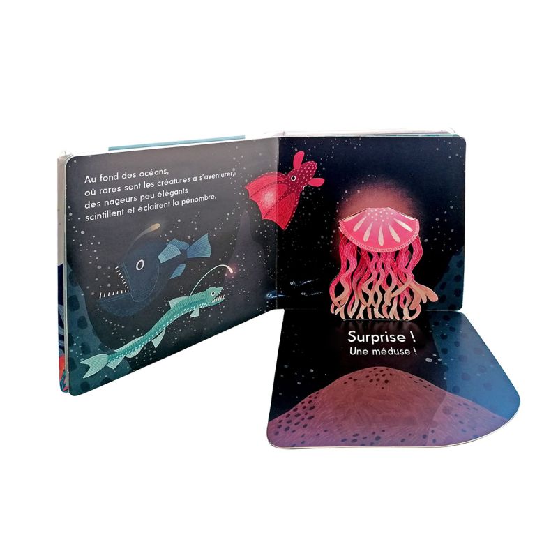 Dans ce tome sur l'océan, l'enfant découvre plusieurs créatures marines fascinantes et leurs différents milieux (algues, profondeurs abyssales, récifs coralliens...)