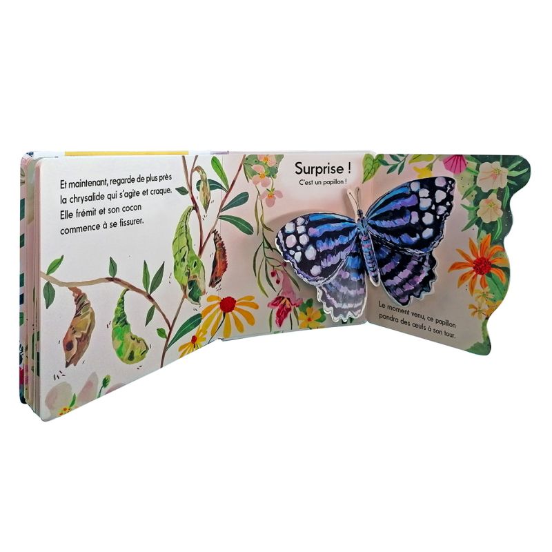La collection Mes premiers pop-up propose une lecture amusante, éducative et interactive. Chaque double page se déploie, révélant un animal ou un élément du décor en 3D. Dans ce tome sur le papillon, l'enfant suit le cycle de vie du papillon, de la chenille sortant de son oeuf à la transformation finale en un magnifique papillon.