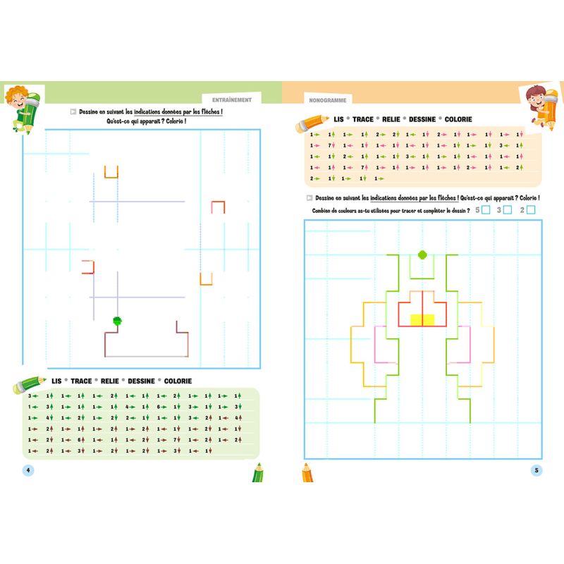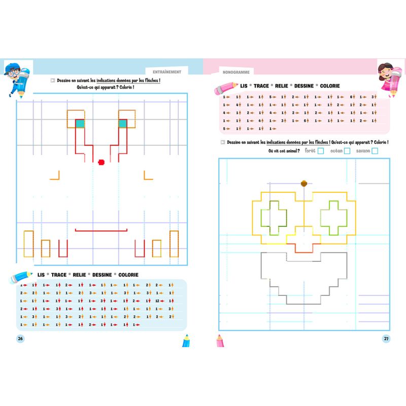 40 modèles de nonogrammes adaptés aux enfants pour des heures de concentration puis de coloriage.