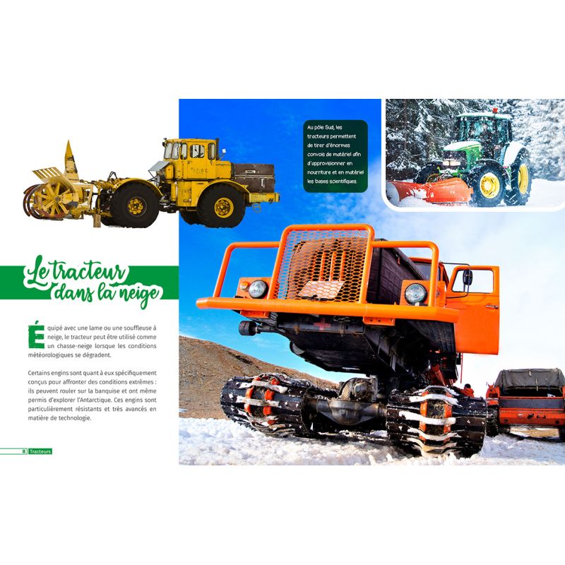 Au fil des pages, de courts paragraphes sur les différents types de tracteurs et leurs outils associés complètent les photographies. Tracteurs forestiers, tracteurs enjambeurs, semoirs, herses et même les fabuleux tracteurs qui ont participé à l'exploration du pôle Sud seront présentés. De quoi faire briller les yeux d'une nouvelle génération d'enfants !
