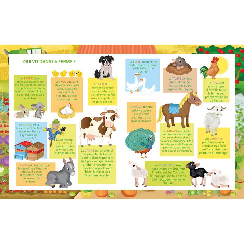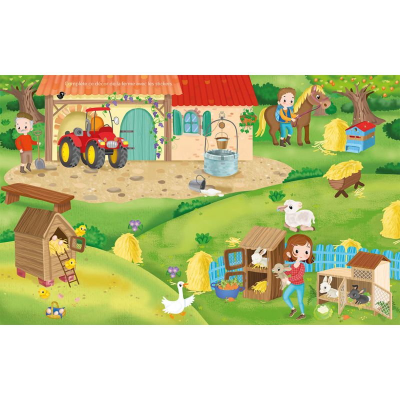 Un grand cahier de jeu et de stickers sur le thème de la ferme, avec une présentation des différents animaux vivant dans cet environnement. De grandes double pages illustrées pour laisser
