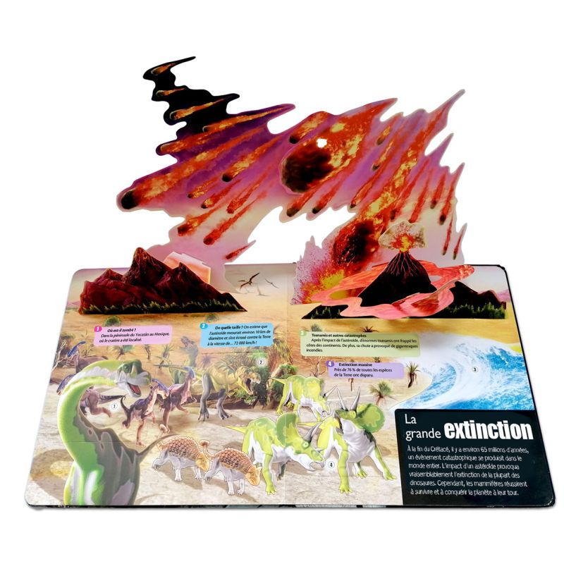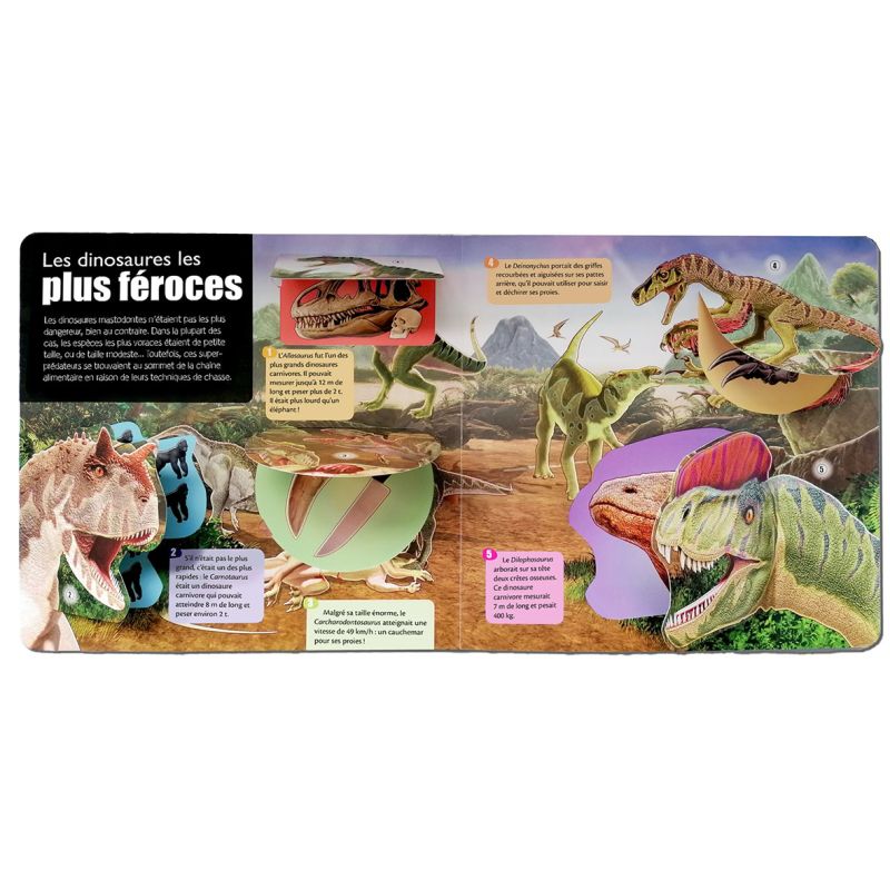 Cet album tout-carton propose une immersion en 3D dans le monde des dinosaures. Grâce aux nombreuses fenêtres, aux incroyables pop-ups et aux informations insolites de ce livre, vous embarquerez pour un extraordinaire voyage à la découverte de ces créatures fascinantes.