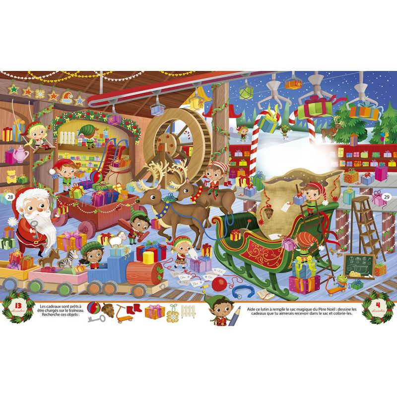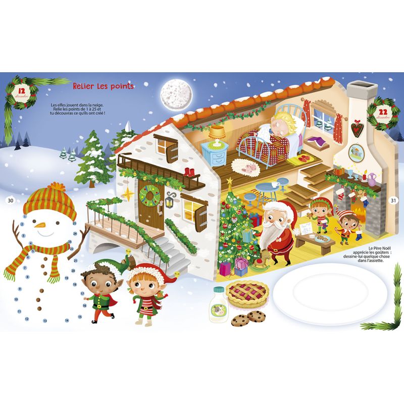 S'ensuivent 32 pages d'activités variées : recettes de cuisine de fête, coloriages, activités manuelles pour décorer le sapin et la cheminée, jeux de « Cherche et trouve », de quoi longuement occuper les enfants pendant la période qui précède Noël.