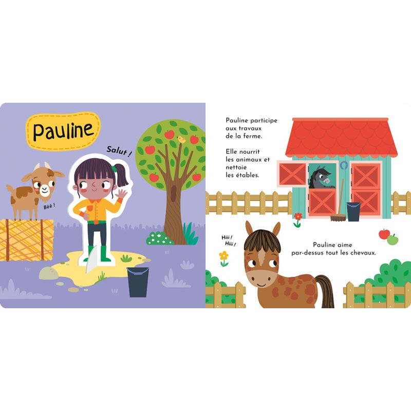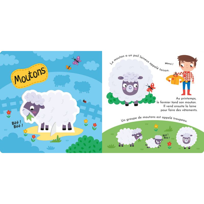 La ferme. Ce beau livre tout-carton de 16 pages est composé de deux parties : la première se lit et offre de petites informations amusantes sur l'univers de la ferme. La deuxième partie est composée de diverses pièces à détacher des pages et à assembler pour former le plateau de jeu et les figurines pour jouer. L'univers de l'ouvrage est très ludique et coloré et s'adresse à de jeunes enfants. Points forts : Un livre tout-carton bien solide, livre et jeu à la fois Un plateau de jeu réversible 30 figurines simples à assembler.