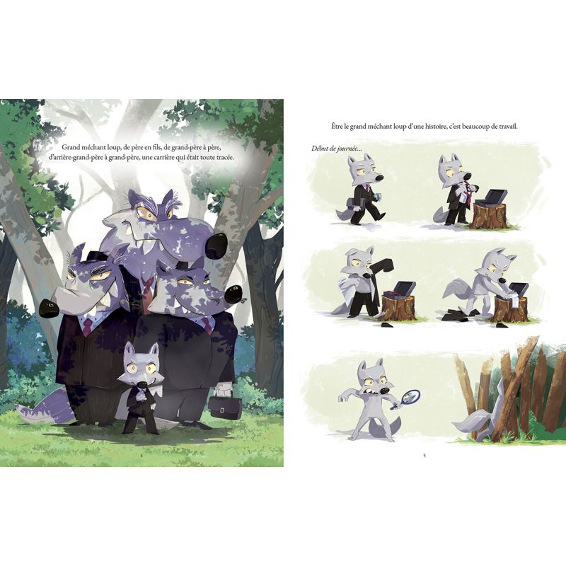 Rien ne va plus pour le célèbre grand méchant loup : concurrencé de toutes parts par des ogres, sorcières et dragons, il n'arrive plus à trouver sa place dans les histoires. En quête de renouveau, il part en ville pour chercher du travail mais finit à la fourrière ! Heureusement, une petite fille au grand coeur l'adopte et lui montre que la gentillesse, l'écoute et le respect peuvent aussi mener à une belle fin.
