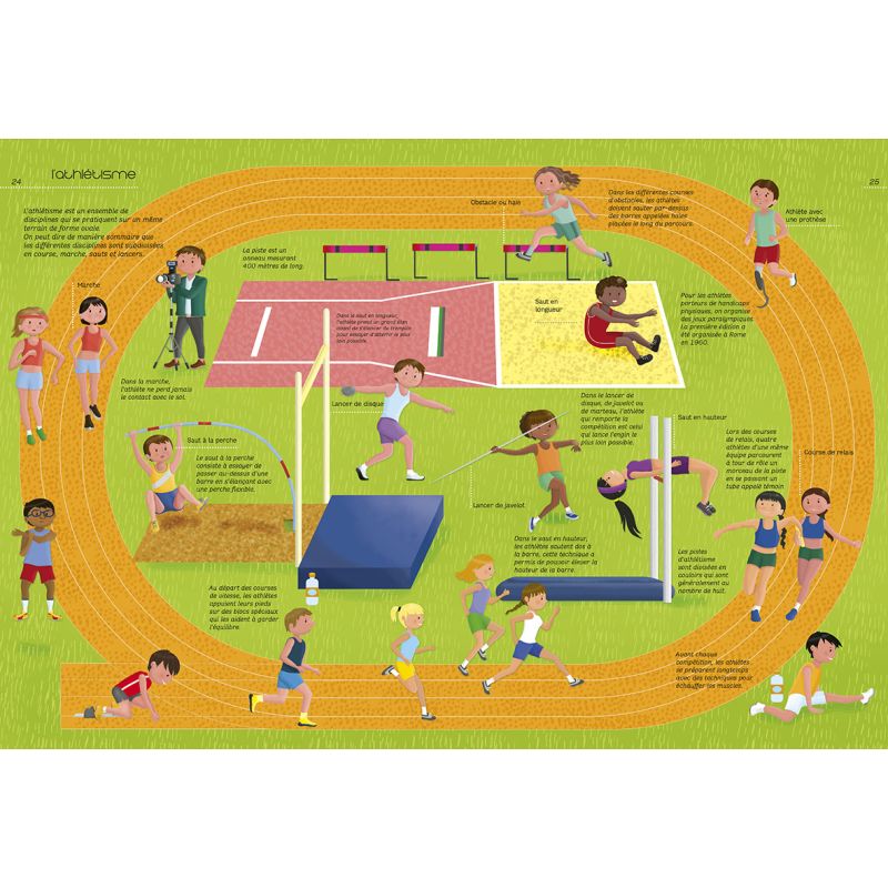 Football, basketball, tennis, natation, athlétisme, rugby Chaque discipline est présentée à travers des images dynamiques et des infographies ludiques, rendant l'apprentissage du sport à la fois accessible et passionnant.