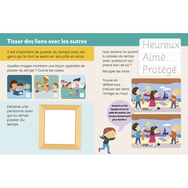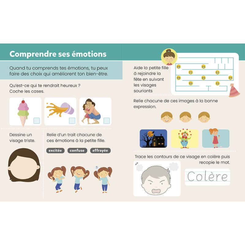 Un livre ardoise de 28 pages, accompagné d'un feutre effaçable, conçu pour éveiller la curiosité de l'enfant. À travers de petits exercices ludiques et variés (tracés, dessins et jeux), il l'aide à développer son autonomie et à apprendre les bases du bien-être (prendre soin de soi, respecter les règles d'hygiène et de sécurité), tout en développant sa réflexion, son autonomie et en encourageant les échanges avec les adultes.