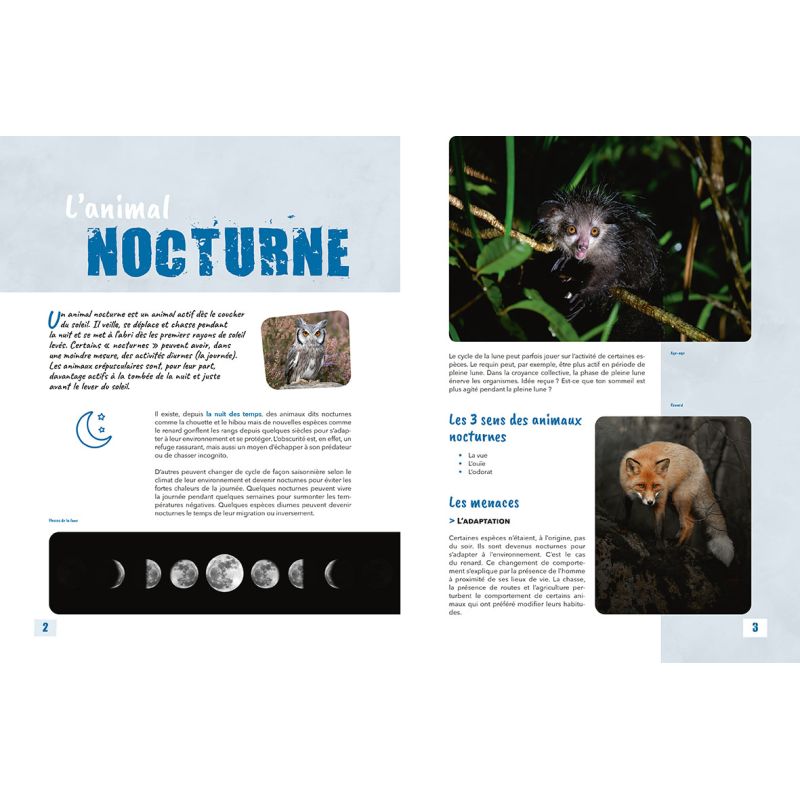 Dès le coucher du soleil, la faune nocturne prend vie. Elle veille, se déplace, chasse pendant la nuit, puis court se mettre à l'abri dès les premiers rayons du soleil. Certains animaux sont uniquement nocturnes, d'autres alternent suivant les saisons, d'autres encore ne sortent qu'à l'aube ou au crépuscule. Mais qui sont ces bêtes qui envahissent la nuit, et que nous n'apercevons presque jamais ? Pourquoi préfèrent-elles l'ombre à la lumière ? Comment vivent-elles et se sont-elles adaptées pour évoluer dans l'obscurité ? Ce documentaire richement illustré se propose de répondre à toutes ces questions en présentant de nombreuses espèces nocturnes.