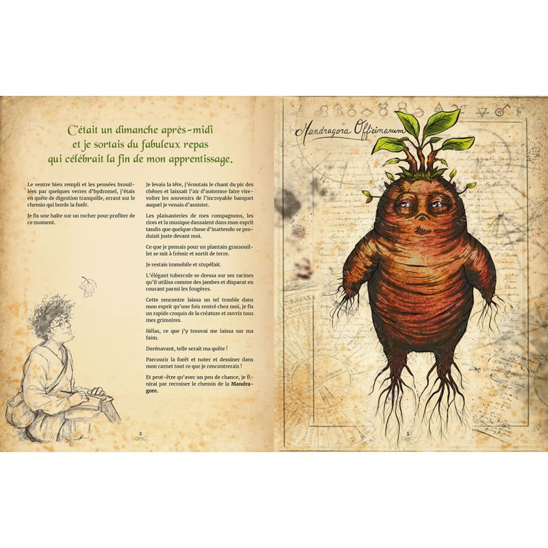 L'album se lit comme le journal d'un jeune druide qui part à la recherche de la Mandragore à travers la forêt. En chemin il rencontre une multitude de végétaux et êtres enchantés qu'il décrit et dessine.