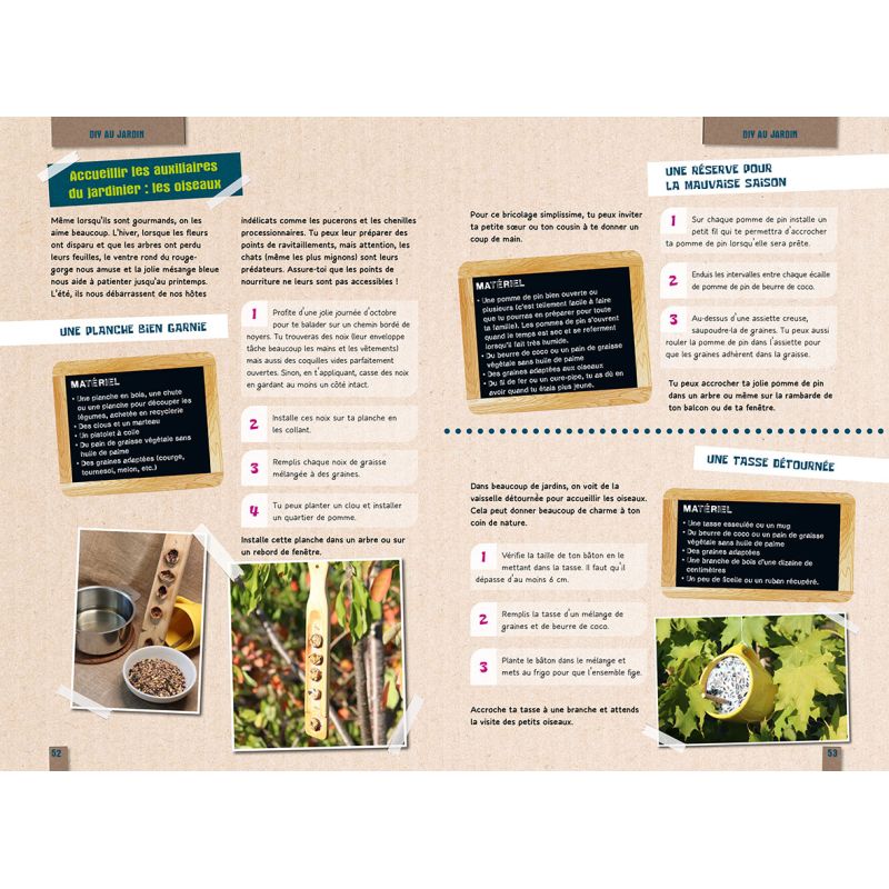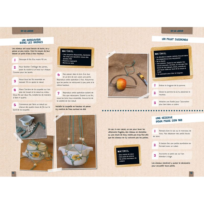 Tu fourmilles d'idées et tu as envie de les mettre en uvre pour créer des objets utiles, amusants ou tout simplement beaux ? Tu as envie de rendre ton jardin accueillant pour les humains, les oiseaux et les insectes ? Tu veux valoriser certains déchets et utiliser des objets un peu oubliés au fond des tiroirs et des placards ?