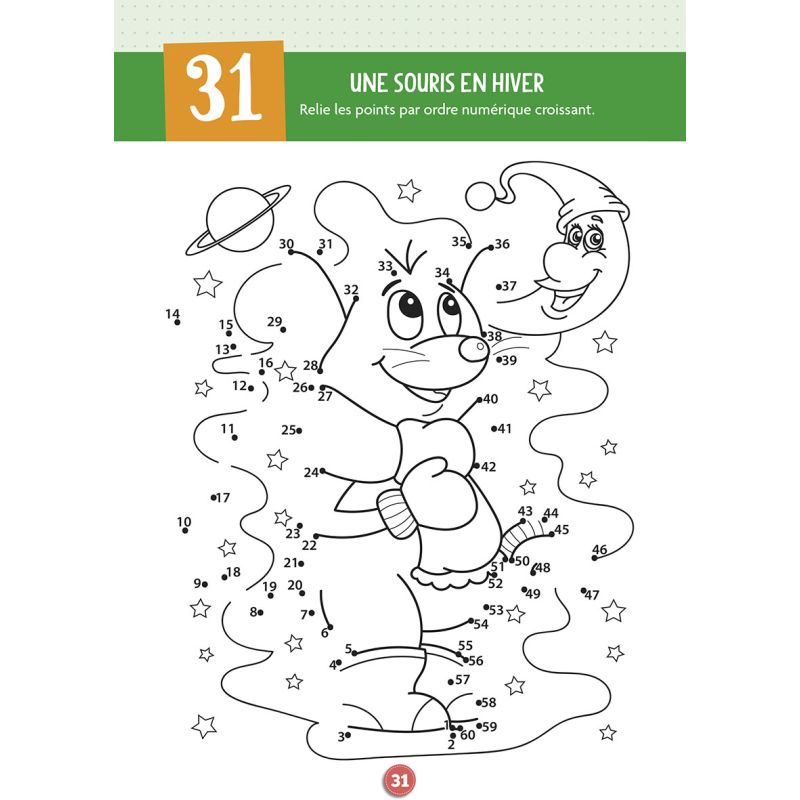 Les jeux de points à relier permettent aux enfants d'apprendre à tenir un crayon pour faire un tracé en suivant les nombres, afin de faire apparaître un dessin. Ils permettent ainsi d'améliorer la reconnaissance des chiffres et leur dénombrement, tout en développant leurs compétences motrices : l'enfant s'amuse et apprend en même temps. Pour continuer le jeu, on peut ensuite le colorier !